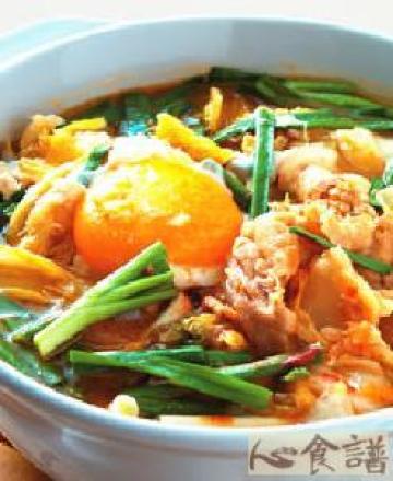 汤底材料:250㏄,韩式泡菜200公克,火锅料:150公克,韭菜10支,豆腐1个,鸡蛋1个,沙拉油少许