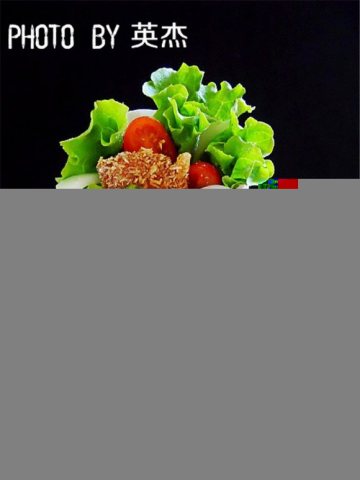 鸡肉8两,西洋生菜4片,洋葱丁适量,蕃茄丁适量,美奶滋适量,太白粉1小匙,低筋面粉1小匙,水适量,低筋面粉4大匙,蛋1颗,葱油少许,盐少许,开水适量