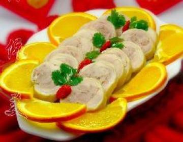 11.浸泡入味的鸡腿卷,捞出来,切片,就可以吃了