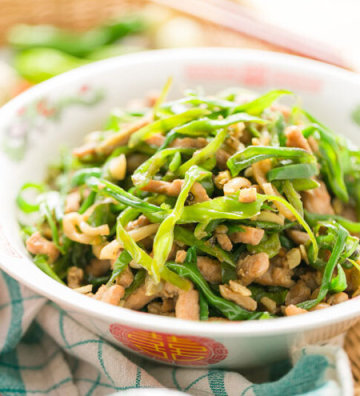 2、用3大匙油先将肉丝炒散,再放入榨菜肉丝同炒,炒匀后盛出。