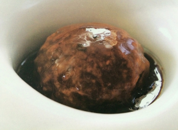 6.将外皮微煎的肉团上笼隔水蒸15.20分钟.