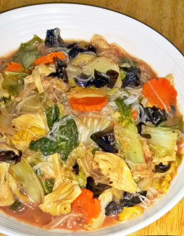 7、最后用薄薄的芡汁勾芡加入粉丝翻炒均匀即可。(汤汁要煮多一些,稍后粉丝会把汤汁吸收)