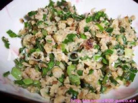 玉米面,韭菜,鸡蛋,虾皮,香油,盐