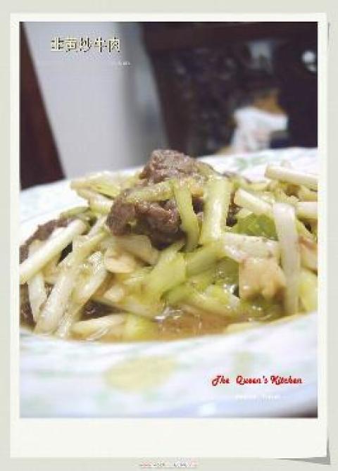 因为牛肉买的是腌好的,所以炒韭黄的时候只需要加少量的盐和鸡精带出味道就可以了。 韭黄很容易熟,所以不宜炒太久,老了就不好吃了。