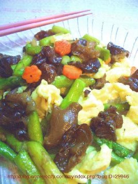 第一种:炒菜菜谱木耳芦笋炒鸡蛋做法
