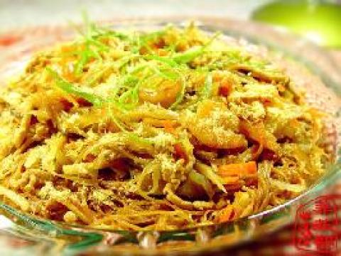 1.原料:炸线面 海鲜(这个随意,根据自己口味) 辅料:黑木耳 青菜 调料:地道的虾油(鱼露) 味精 糖 料酒 洋葱末做法:1.线面用开水泡20秒立马捞出过冷水待用 2.海鲜过热水待用,洋葱切丝待用 3.锅内入油放洋葱丝炒香,放入青菜和烫过水的海鲜翻炒 4.加入虾油,糖,料酒继续翻炒,接着加入线面,用筷子稍微翻下,洒上味精即可