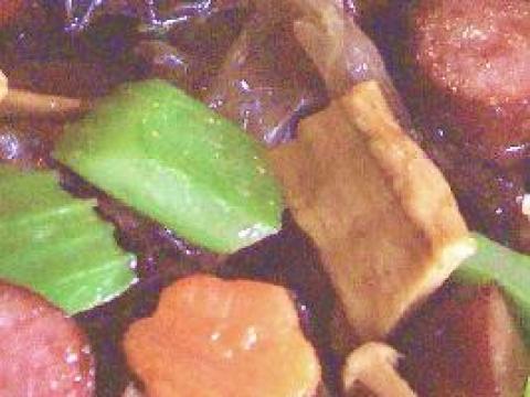 3、再倒入香肠,喜欢的可打个薄芡,不打也可以,起锅!