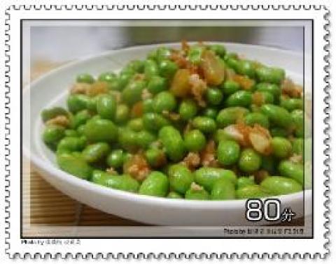 2.锅中倒油少许,倒入青豆翻炒五至八分钟,至豆熟透,此时加入炒制过的肉末,以及适量精盐,一齐翻炒片刻,即可出锅。