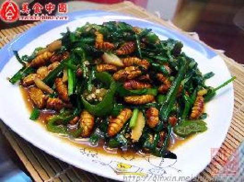 相关菜谱名称推荐:韭菜炒蚕蛹,韭菜炒蚕蛹,韭菜炒蚕蛹,炒蚕蛹