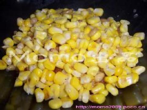 2.锅内放少量油,烧热后加入玉米翻炒。