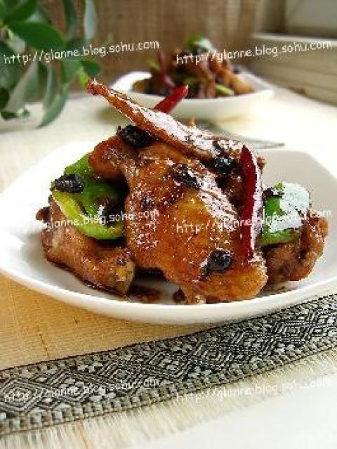 土鸡1只,干豆豉,干辣椒,青椒,葱,姜,蚝油,老抽,料酒,淀粉,白糖,盐