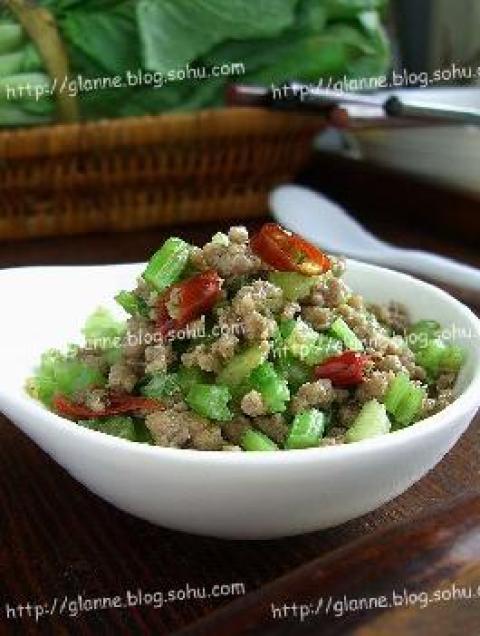 芹菜,牛肉末,干辣椒,淀粉,盐