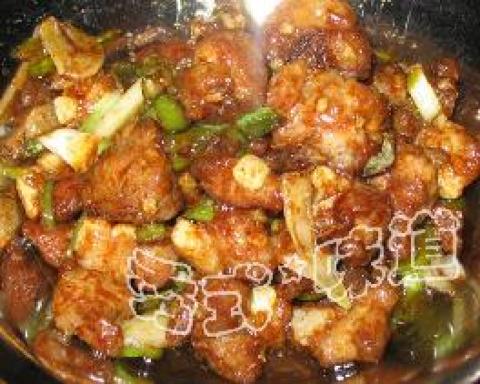 2.坐锅烧油,下仔排爆炒,喷白酒(分两次喷),时间不长,几分钟就可以了;