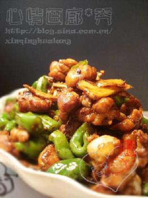 2.老姜切片(多点),青椒切小段;