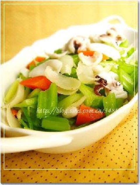 墨鱼,芹菜,百合,胡萝卜,薄芡汁