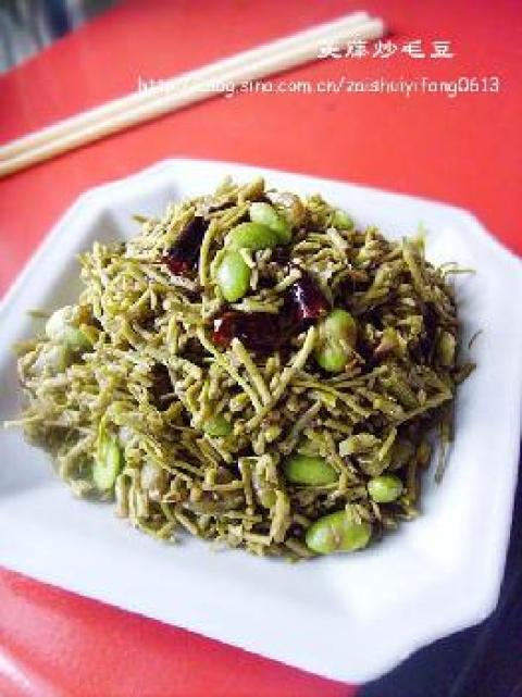相关菜谱名称推荐:菱藤炒毛豆,菱藤炒毛豆,萝卜干炒毛豆,大头菜炒毛豆