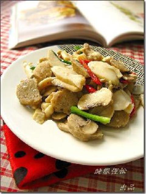 4.再倒入肉丸片翻炒,关火。加葱段辣椒丝拌匀即可。