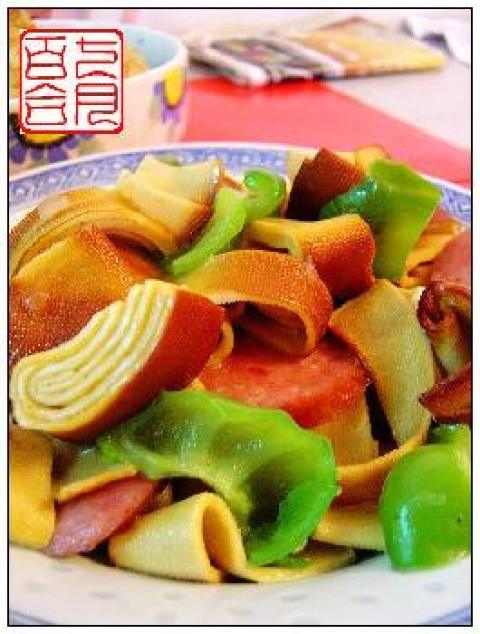 青椒,熏干豆腐,香肠,蒜片