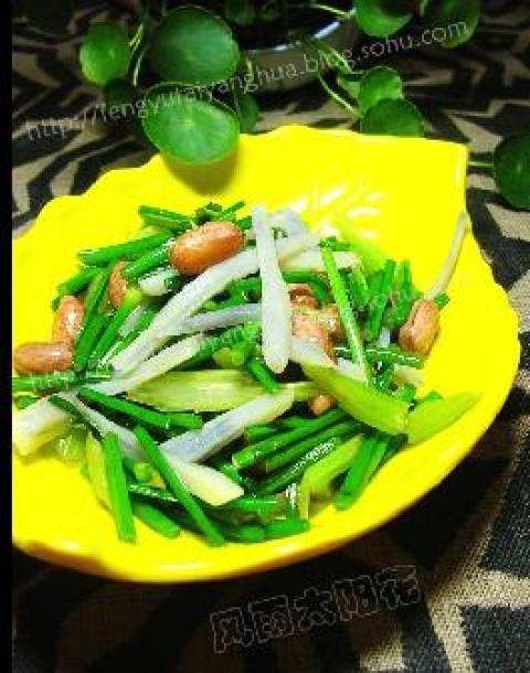 泡脆的花生米,韭薹,小芹菜,藕尖