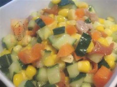 1.玉米取粒,青瓜、胡萝卜切丁备用
