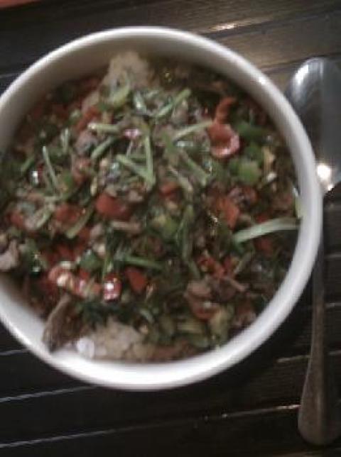 南方青红椒炒牛肉、五彩炒饭、南方炒大蒜。