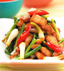 第一种:炒菜菜谱三层肉炒珠葱做法