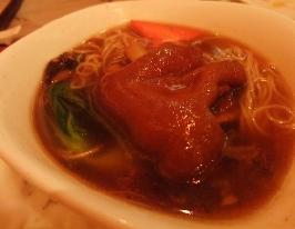 花生猪脚1/2只,白面线30g,高汤3000cc,葱花少许