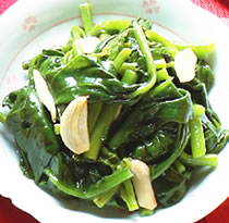 泡菜炒饭、豆皮炒白菜、姜丝炒龙鬚菜、豆腐乳炒空心菜、高丽菜饭