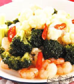 第一种:炒菜菜谱双色花椰炒虾仁做法