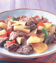 凤梨1/4粒,木耳50公克,猪肺100公克,辣椒1/2条,姜25公克,酸糖醋汁1杯