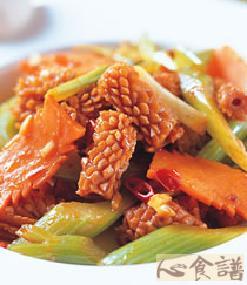 第四种:炒菜菜谱辣炒鱿鱼头 。做法