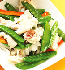 芹菜炒鱿鱼、清炒花枝、炒螺肉。