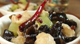 主料:鸡胸肉一块,青笋,木耳,调料:干辣椒,花椒,盐,味精。