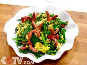 第一种:炒菜菜谱脆皮肠炒韭菜苔做法