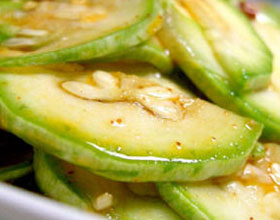 6.瓜片快熟时,倒入蒜末,翻炒两下,再加入味精拌匀装盘即可。