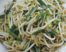 主料:绿豆芽250克,韭菜100克,