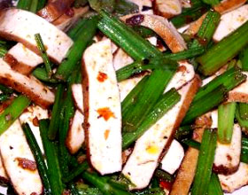 第四种:炒菜菜谱家常韭菜豆腐干蒸饺做法