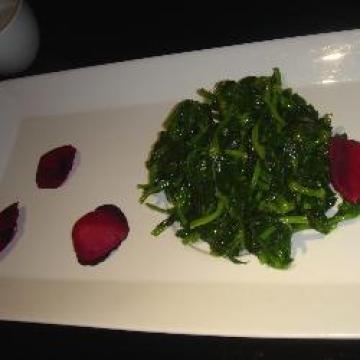 生鸡油,50克,净大豆苗,300克,盐,1/4茶匙,胡椒粉,1捏,玫瑰花瓣,4瓣