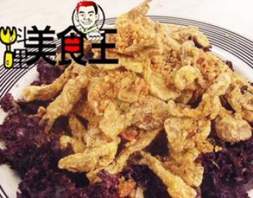 第二种:炒菜菜谱材料:,葱1根,紫生菜半颗,辣椒1根,秀珍菇6两,面粉2大匙,干辣椒1大匙,蒜头酥2大匙,豆酥1大匙,面包粉2大匙,吉士粉2大匙,蛋白1大匙做法