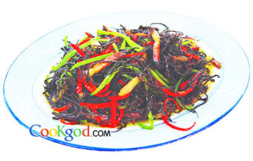 腊肉100克,核桃花(色泽乌黑,有清香味)150克,青、红椒各30克。调料色拉油50克,盐8克,味精8克(此处不能用鸡精,会破坏核桃花和腊肉的本味),糖5克。