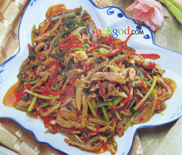炒制此菜,鸭肉亦可用熏鸭肉代之。