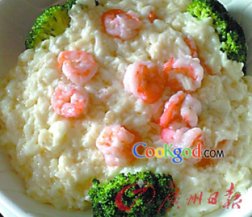牛奶200克、虾仁50克、鸡蛋白5个、淀粉10克、色拉油3汤匙、食盐适量、白糖1克