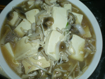 主料:木棉豆腐1盒 金针菇1盒 其他菇类(根据个人喜好)1盒