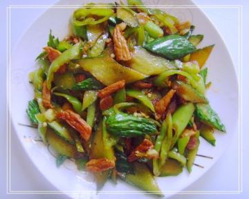 莴笋炒鸡蛋 。、虾皮丝瓜炒鸡蛋 。、辣炒驴皮 。、豆鼓鲮鱼油麦菜、炒三丁 。
