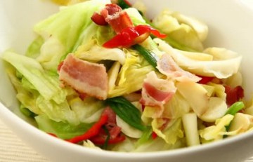 第四种:炒菜菜谱培根炒高丽菜做法