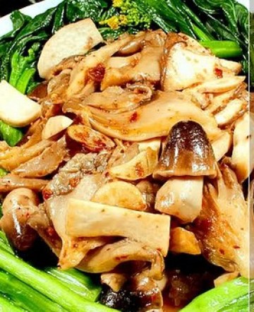 材料:香菇,草菇.蚝菇.王子菇,油菜, x.o酱,蒜盐,糖,味精.