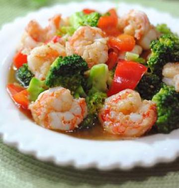 鲜虾、西兰花、红椒