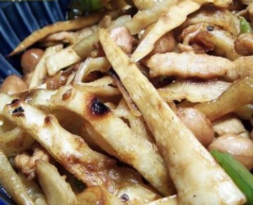咸鸭蛋炒老墨辣椒末、冬笋炒腊肉、鱿鱼炒茭白。