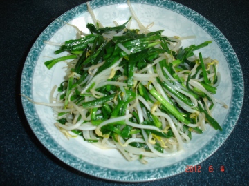 绿豆芽250克,韭菜100克.