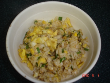 猪脑一只,鸡蛋二只,凉饭150克,葱花少许。
